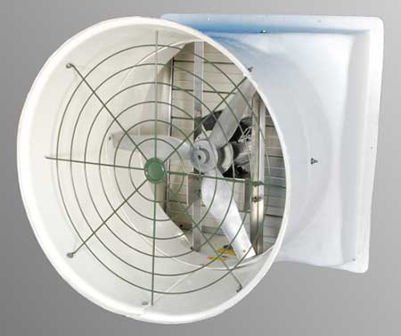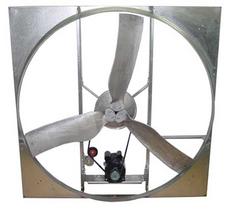 Type NBC fans are the answer to your ventilation requirements. Our innovative drive assembly applies power through V-belts directly to the propeller. Blade load is concentrated directly over the bearings for more economical operation and longer bearing life. Type NBC fans feature 3 cast aluminum airfoil blades secured to a cast aluminum hub. This unique blade assembly has been engineered to provide durability, corrosion resistance, and optimum efficiency. Our use of quality materials and precise engineering techniques in constructing blade assemblies assures you of years of quiet, trouble-free service. Measured in terms of cubic feet of air per minute per dollar invested, Coolair fans are today’s best investment. Coolair uses only the most efficient ball bearings, totally enclosed motors available. Coolair provides recommendations on your specific needs for confinement rearing of poultry, hogs and other livestock. Contact us with your particulars.