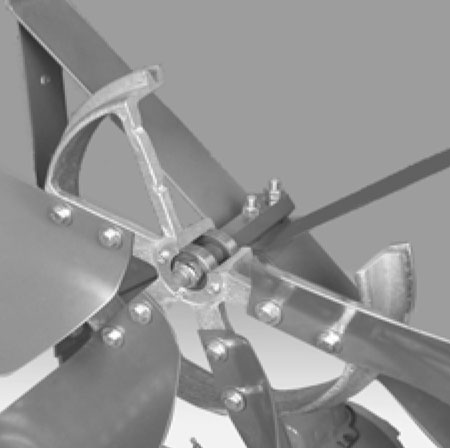 Our engineers have developed an innovative drive assembly for the Type NBF fan. Power is applied through V-belts directly to the propeller with blade load concentrated directly over the bearings to eliminate overhung bearing load. The exclusive, time tested design has been widely acclaimed by engineers. Our use of quality materials and precise engineering techniques in constructing wheel assemblies assure you of years of quiet, trouble-free service.